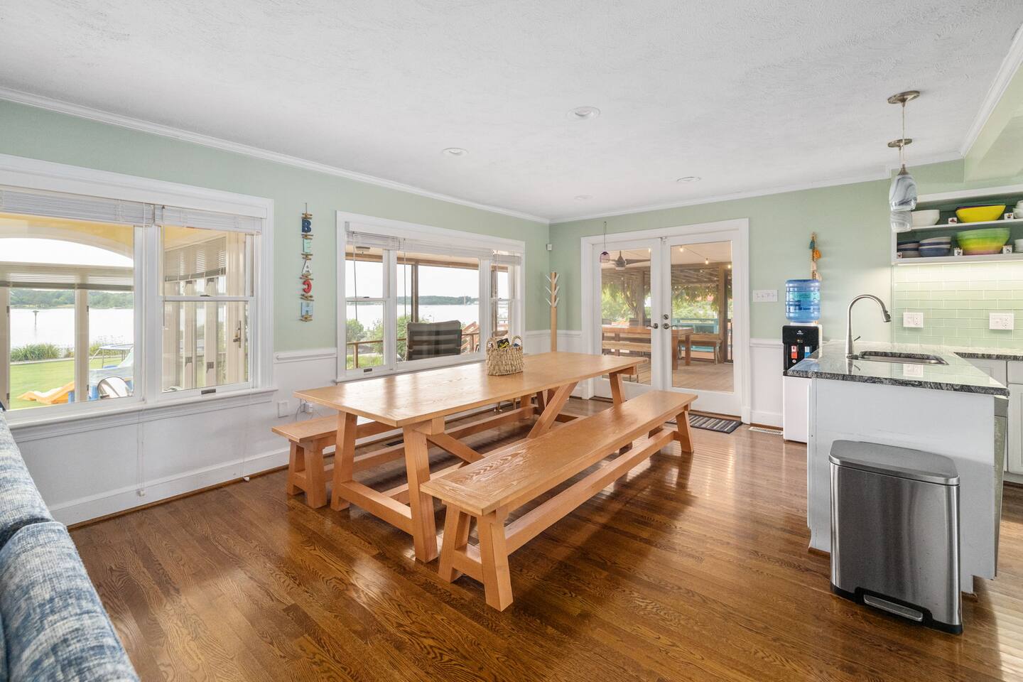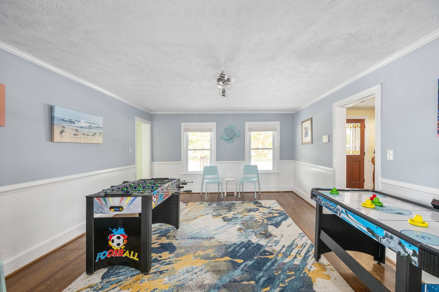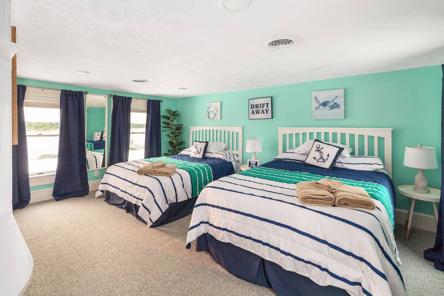 KEY FEATURES 6 Bedrooms (2 Kings, 3 Queens, 6 Twins, 1 Toddler bed) Heated Pool + Hot Tub w/ Water Views 3.5 Shared Bathrooms Fully Fenced Backyard w/ Playground Screened Porch w/ Bar, Dining Table & Lounge Fully Equipped Kitchen: Double Ovens, Gas Cooktop, 2 Fridges Den + Smart TV, Children’s Playroom & Office Space Pet-Friendly (House-trained pets only) Free Driveway Parking Private Pier w/ Boat Lift & Kayak Access Here Are A Few Kind Words From Our Past Guests: "The house was phenomenal!!! very comfortable and spacious, perfect for a group of 22 people. It was fully equipped, and all you really need to bring is your food and the desire to have a great time. There’s so much to do! Megan was an outstanding host! She was incredibly supportive and always there whenever we needed anything. Her attentiveness made our stay even better. I highly recommend it, and it’s definitely something I will be doing again." - Paloma "We had such a wonderful stay! The home was clean, cozy, and exactly as described. The location was perfect- peaceful and scenic, it made our trip feel like a true getaway. It made for such a memorable trip. The host was incredibly responsive and made everything so easy. Our family had a wonderful time! We’d absolutely stay here again. Highly recommend!" - Kerry "The grounds and house were beautiful and very accommodating. Exactly what we all needed to spend time together uninterrupted. Hosts were very responsive and kind when needed. Our family is thinking of booking again next year." - Laura BEDROOMS + BATHROOMS This waterfront Reedville vacation rental features 6 spacious bedrooms and 3.5 updated bathrooms, making it perfect for family reunions, multi-family vacations, or group getaways. Enjoy restful nights in king, queen, twin, and toddler beds across two levels. First Floor Highlights: Primary King Suite w/ Twin & Toddler Bed + Smart TV Queen Guest Room Shared Full Bathroom Second Floor Highlights: King Suite w/ Seating Area Two Bunk Beds (4 Twin Beds Total) Twin Daybed Room Additional Queen Bedroom Shared Hallway Bathroom With a mix of private and shared sleeping spaces, everyone has room to relax. KITCHEN & DINING Hosting is a breeze in this fully equipped gourmet kitchen—ideal for preparing meals for large families or groups. This vacation home features double ovens, a gas cooktop, two refrigerators, a microwave, dishwasher, and a well-stocked coffee bar. The expansive dining setup includes: Indoor dining table that seats 16+ Outdoor dining on the screened-in porch or deck Ample kitchenware, utensils, and cookware Perfect for holiday dinners, weekend feasts, or casual brunch with a waterfront view. LOUNGE SPACES This Reedville rental with multiple lounge spaces offers the perfect balance of fun and relaxation. On the first floor, enjoy the cozy den with Smart TV or retreat to the sunroom overlooking the playground and water. Highlights include: Screened-in porch w/ comfy seating, bar area, Ice machine, and water view Upper-level bayview nook w/ panoramic water vistas Children’s playroom stocked with books, puzzles, and games Dedicated office space for remote work or quiet time Whether you're enjoying family movie night or sipping wine by the bay, you'll find your perfect hangout spot. OUTSIDE SPACE This waterfront rental offers a stunning outdoor setup designed for relaxation and recreation. The heated pool, hot tub, and fully fenced backyard make it ideal for families with kids or pets. Outdoor amenities include: Private pier w/ boat lift, lights, and fish-cleaning station Kayak, paddle boat & life jackets (included) Spacious deck w/ firepit, 2 propane grills & outdoor dining Movable basketball hoop on paved driveway Kids’ playground w/ views of the water Boaters and nature lovers alike will love launching right from the pier—3.5’ deep at high tide. Bring your boat and start your adventure! APARTMENT SPACE An optional apartment above the garage can be rented separately. It includes 3 Queen beds, full bath, couch, mini fridge, and Keurig. Please note: stove not operational. Message for availability + rates! Book Now & Let Us Take Care Of You In Reedville, VA! Guest access Guests enjoy full access to the home and all outdoor amenities—including pool, hot tub, kayak, paddle boat, and basketball hoop. Excluded areas: owner’s closets, attic, basement, and locked garage beneath apartment. Apartment rental is separate. Other Things to Note 🐾 Pet-friendly: House-trained pets only, leash required outside, crate if unattended. 🧻 Starter supplies provided (paper towels, trash bags, detergent) 📹 Security: Cameras on porch, deck, playground, and entrances ♿ Accessibility: Stairs required to enter 🚗 Free parking in driveway 🎉 No parties/events | 🚭 No smoking 🧑🤝🧑 Max 2 unregistered guests allowed ⏱️ Check-in: 4–11 PM | Check-out: 7–10 AM 🔞 Minimum age: 25 | ID & Truvi guest verification required Where you’ll be Neighborhood Highlights The Fleeton House is located in beautiful Reedville, VA—a waterfront gem perfect for outdoor lovers and explorers. From boating and beachcombing to sipping at local wineries, there's something for everyone. 🎣 Reedville (6 Mins) 🎉 Local Festivals (Seasonal, Nearby) 🍤 Waterfront Dining (6 Mins or Less) 🏖️ Vir-Mar Beach (Short Drive) 🌿 Hughlett Point Natural Area Preserve (Short Drive) 🎢 Compass Entertainment Complex (20 miles) Getting around: You will need a vehicle to get to Reedville and local shopping/attractions. Book Now & Let Us Take Care Of You in Reedville, VA!