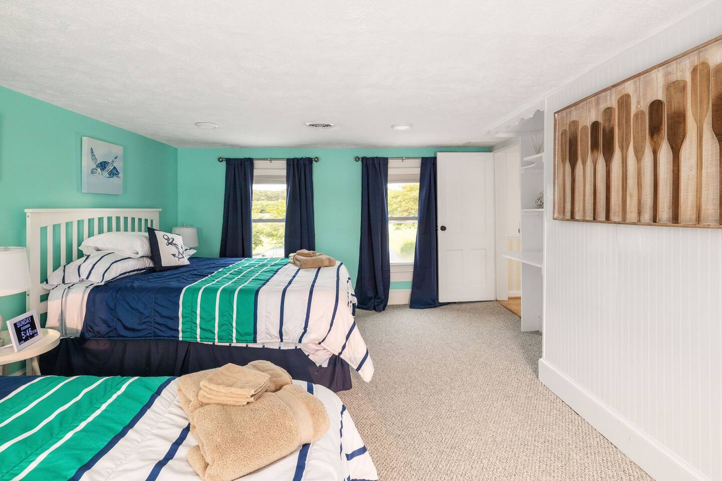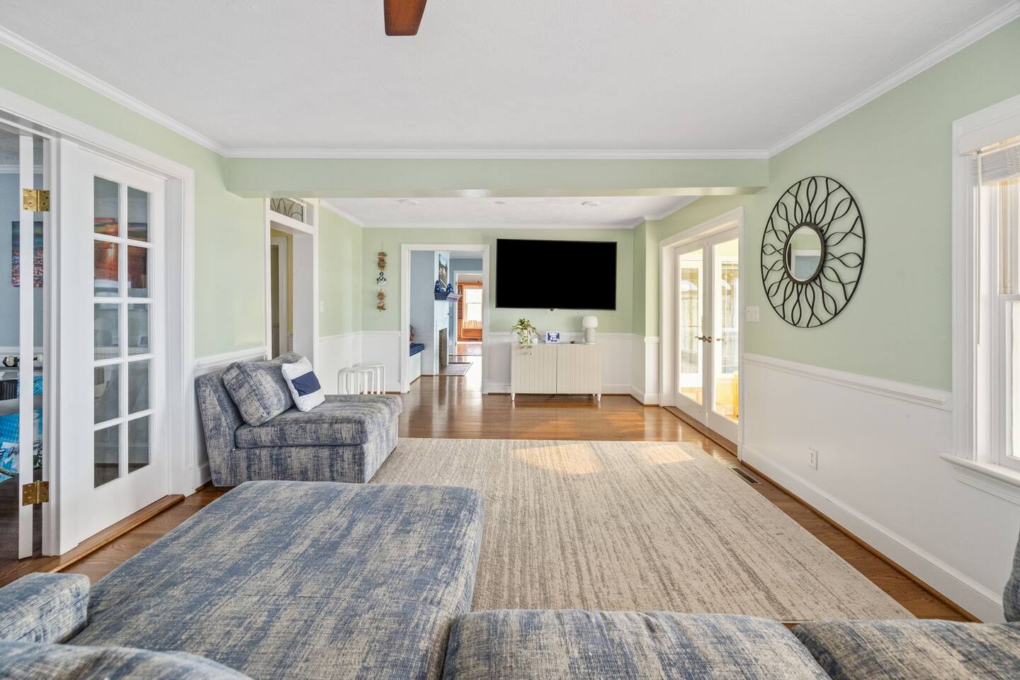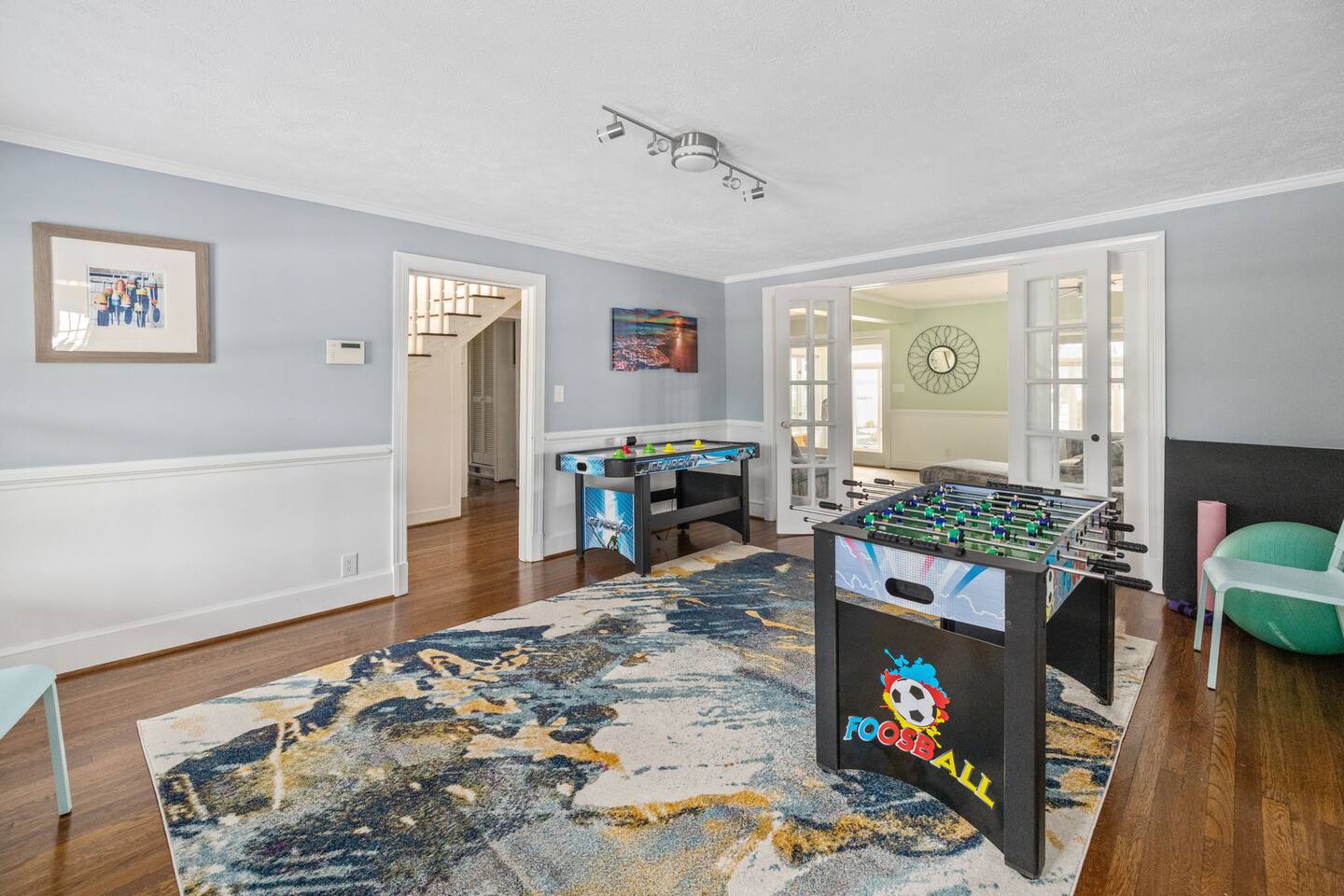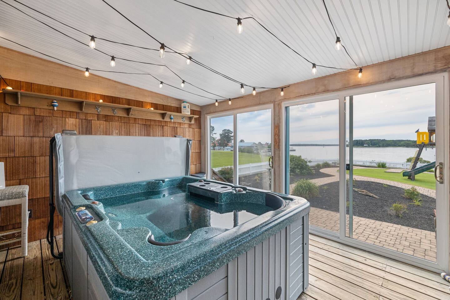 KEY FEATURES 6 Bedrooms (2 Kings, 3 Queens, 6 Twins, 1 Toddler bed) Heated Pool + Hot Tub w/ Water Views 3.5 Shared Bathrooms Fully Fenced Backyard w/ Playground Screened Porch w/ Bar, Dining Table & Lounge Fully Equipped Kitchen: Double Ovens, Gas Cooktop, 2 Fridges Den + Smart TV, Children’s Playroom & Office Space Pet-Friendly (House-trained pets only) Free Driveway Parking Private Pier w/ Boat Lift & Kayak Access Here Are A Few Kind Words From Our Past Guests: "The house was phenomenal!!! very comfortable and spacious, perfect for a group of 22 people. It was fully equipped, and all you really need to bring is your food and the desire to have a great time. There’s so much to do! Megan was an outstanding host! She was incredibly supportive and always there whenever we needed anything. Her attentiveness made our stay even better. I highly recommend it, and it’s definitely something I will be doing again." - Paloma "We had such a wonderful stay! The home was clean, cozy, and exactly as described. The location was perfect- peaceful and scenic, it made our trip feel like a true getaway. It made for such a memorable trip. The host was incredibly responsive and made everything so easy. Our family had a wonderful time! We’d absolutely stay here again. Highly recommend!" - Kerry "The grounds and house were beautiful and very accommodating. Exactly what we all needed to spend time together uninterrupted. Hosts were very responsive and kind when needed. Our family is thinking of booking again next year." - Laura BEDROOMS + BATHROOMS This waterfront Reedville vacation rental features 6 spacious bedrooms and 3.5 updated bathrooms, making it perfect for family reunions, multi-family vacations, or group getaways. Enjoy restful nights in king, queen, twin, and toddler beds across two levels. First Floor Highlights: Primary King Suite w/ Twin & Toddler Bed + Smart TV Queen Guest Room Shared Full Bathroom Second Floor Highlights: King Suite w/ Seating Area Two Bunk Beds (4 Twin Beds Total) Twin Daybed Room Additional Queen Bedroom Shared Hallway Bathroom With a mix of private and shared sleeping spaces, everyone has room to relax. KITCHEN & DINING Hosting is a breeze in this fully equipped gourmet kitchen—ideal for preparing meals for large families or groups. This vacation home features double ovens, a gas cooktop, two refrigerators, a microwave, dishwasher, and a well-stocked coffee bar. The expansive dining setup includes: Indoor dining table that seats 16+ Outdoor dining on the screened-in porch or deck Ample kitchenware, utensils, and cookware Perfect for holiday dinners, weekend feasts, or casual brunch with a waterfront view. LOUNGE SPACES This Reedville rental with multiple lounge spaces offers the perfect balance of fun and relaxation. On the first floor, enjoy the cozy den with Smart TV or retreat to the sunroom overlooking the playground and water. Highlights include: Screened-in porch w/ comfy seating, bar area, Ice machine, and water view Upper-level bayview nook w/ panoramic water vistas Children’s playroom stocked with books, puzzles, and games Dedicated office space for remote work or quiet time Whether you're enjoying family movie night or sipping wine by the bay, you'll find your perfect hangout spot. OUTSIDE SPACE This waterfront rental offers a stunning outdoor setup designed for relaxation and recreation. The heated pool, hot tub, and fully fenced backyard make it ideal for families with kids or pets. Outdoor amenities include: Private pier w/ boat lift, lights, and fish-cleaning station Kayak, paddle boat & life jackets (included) Spacious deck w/ firepit, 2 propane grills & outdoor dining Movable basketball hoop on paved driveway Kids’ playground w/ views of the water Boaters and nature lovers alike will love launching right from the pier—3.5’ deep at high tide. Bring your boat and start your adventure! APARTMENT SPACE An optional apartment above the garage can be rented separately. It includes 3 Queen beds, full bath, couch, mini fridge, and Keurig. Please note: stove not operational. Message for availability + rates! Book Now & Let Us Take Care Of You In Reedville, VA! Guest access Guests enjoy full access to the home and all outdoor amenities—including pool, hot tub, kayak, paddle boat, and basketball hoop. Excluded areas: owner’s closets, attic, basement, and locked garage beneath apartment. Apartment rental is separate. Other Things to Note 🐾 Pet-friendly: House-trained pets only, leash required outside, crate if unattended. 🧻 Starter supplies provided (paper towels, trash bags, detergent) 📹 Security: Cameras on porch, deck, playground, and entrances ♿ Accessibility: Stairs required to enter 🚗 Free parking in driveway 🎉 No parties/events | 🚭 No smoking 🧑🤝🧑 Max 2 unregistered guests allowed ⏱️ Check-in: 4–11 PM | Check-out: 7–10 AM 🔞 Minimum age: 25 | ID & Truvi guest verification required Where you’ll be Neighborhood Highlights The Fleeton House is located in beautiful Reedville, VA—a waterfront gem perfect for outdoor lovers and explorers. From boating and beachcombing to sipping at local wineries, there's something for everyone. 🎣 Reedville (6 Mins) 🎉 Local Festivals (Seasonal, Nearby) 🍤 Waterfront Dining (6 Mins or Less) 🏖️ Vir-Mar Beach (Short Drive) 🌿 Hughlett Point Natural Area Preserve (Short Drive) 🎢 Compass Entertainment Complex (20 miles) Getting around: You will need a vehicle to get to Reedville and local shopping/attractions. Book Now & Let Us Take Care Of You in Reedville, VA!