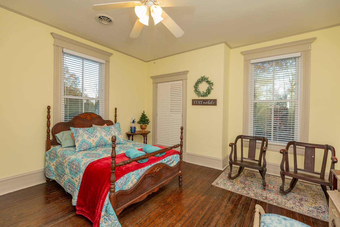 Forget your worries in this spacious historic home full of Southern charm. Sip coffee on the large front porch, relax in the cozy parlor, or enjoy a movie night in the theater room. The well-appointed kitchen has double ovens, 2 refrigerators, & plenty of space for gathering. Walk to local eateries & antique shops or take a short drive to the local creamery for fresh ice cream. We are your perfect peaceful getaway! -Local Eateries & Shops (Walking Distance) -Farmville (30 Mins) -Richmond (1 Hr)